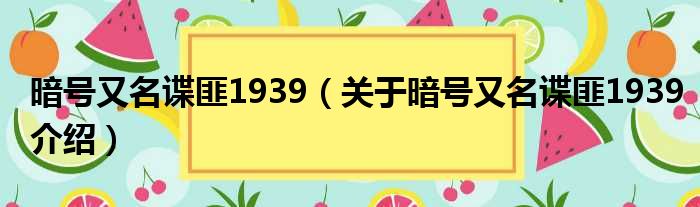 大家好,小钱来为大家解答以上的问题。暗号又名谍匪1939,关于暗号又名谍匪1939介绍这个很多人还不知道,现在让我们一起来看看吧!