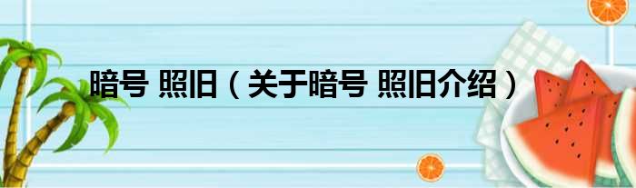 大家好,小钱来为大家解答以上的问题。暗号,照旧,关于暗号,照旧介绍这个很多人还不知道,现在让我们一起来看看吧!
