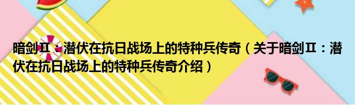 关于暗剑Ⅱ:潜伏在抗日战场上的特种兵传奇到此分享完毕,希望能帮助到您。