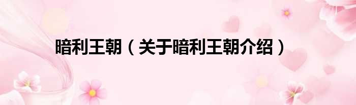 免责声明:本文由用户上传,如有侵权请联系删除!大家好,小钱来为大家解答以上的问题。暗利王朝,关于暗利王朝介绍这个很多人还不知道,现在让我们一起来看看吧!