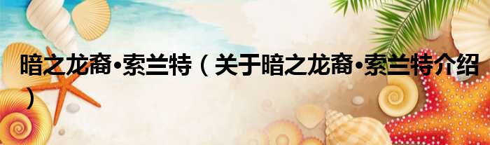 大家好,小钱来为大家解答以上的问题。暗之龙裔·索兰特,关于暗之龙裔·索兰特介绍这个很多人还不知道,现在让我们一起来看看吧!