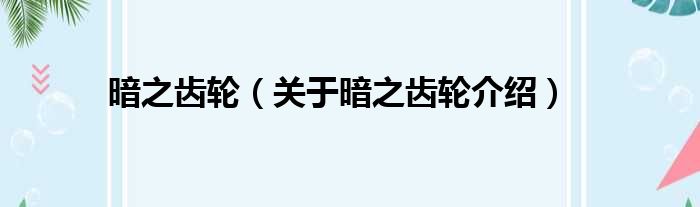 免责声明:本文由用户上传,如有侵权请联系删除!大家好,小钱来为大家解答以上的问题。暗之齿轮,关于暗之齿轮介绍这个很多人还不知道,现在让我们一起来看看吧!