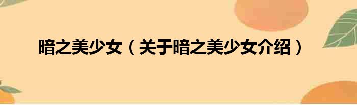 关于暗之美少女到此分享完毕,希望能帮助到您。