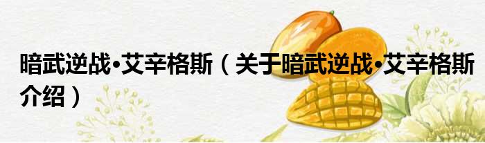 免责声明:本文由用户上传,如有侵权请联系删除!大家好,小钱来为大家解答以上的问题。暗武逆战·艾辛格斯,关于暗武逆战·艾辛格斯介绍这个很多人还不知道,现在让我们一起来看看吧!