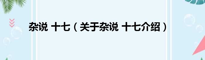 免责声明:本文由用户上传,如有侵权请联系删除!大家好,小钱来为大家解答以上的问题。杂说 十七,关于杂说 十七介绍这个很多人还不知道,现在让我们一起来看看吧!