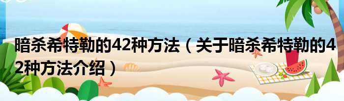 关于暗杀希特勒的42种方法到此分享完毕,希望能帮助到您。