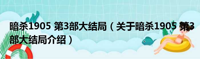 免责声明:本文由用户上传,如有侵权请联系删除!大家好,小钱来为大家解答以上的问题。暗杀1905 第3部大结局,关于暗杀1905 第3部大结局介绍这个很多人还不知道,现在让我们一起来看看吧!