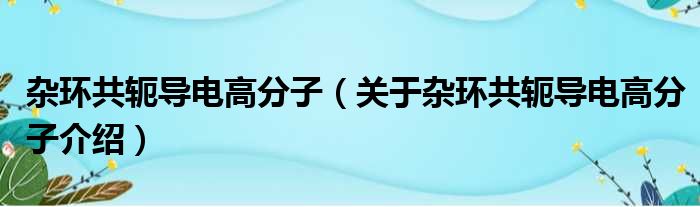 免责声明:本文由用户上传,如有侵权请联系删除!大家好,小钱来为大家解答以上的问题。杂环共轭导电高分子,关于杂环共轭导电高分子介绍这个很多人还不知道,现在让我们一起来看看吧!