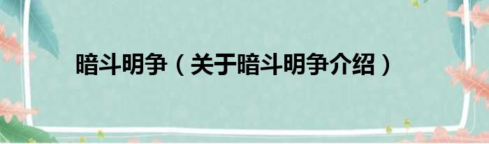 免责声明:本文由用户上传,如有侵权请联系删除!大家好,小钱来为大家解答以上的问题。暗斗明争,关于暗斗明争介绍这个很多人还不知道,现在让我们一起来看看吧!