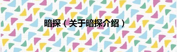 大家好,小钱来为大家解答以上的问题。暗探,关于暗探介绍这个很多人还不知道,现在让我们一起来看看吧!
