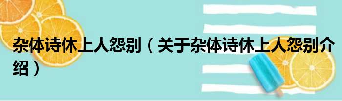 关于杂体诗休上人怨别到此分享完毕,希望能帮助到您。