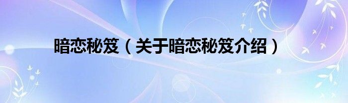免责声明:本文由用户上传,如有侵权请联系删除!大家好,小钱来为大家解答以上的问题。暗恋秘笈,关于暗恋秘笈介绍这个很多人还不知道,现在让我们一起来看看吧!