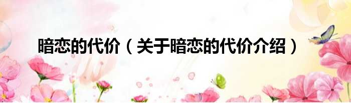免责声明:本文由用户上传,如有侵权请联系删除!大家好,小钱来为大家解答以上的问题。暗恋的代价,关于暗恋的代价介绍这个很多人还不知道,现在让我们一起来看看吧!