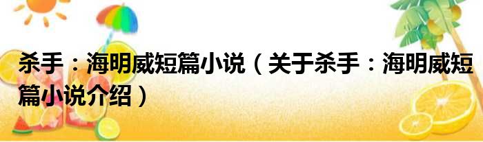免责声明:本文由用户上传,如有侵权请联系删除!大家好,小钱来为大家解答以上的问题。杀手:海明威短篇小说,关于杀手:海明威短篇小说介绍这个很多人还不知道,现在让我们一起来看看吧!