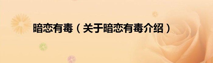 免责声明:本文由用户上传,如有侵权请联系删除!大家好,小钱来为大家解答以上的问题。暗恋有毒,关于暗恋有毒介绍这个很多人还不知道,现在让我们一起来看看吧!