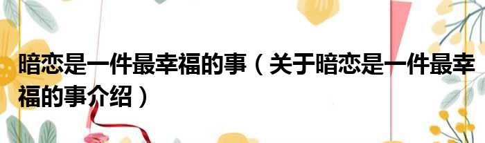 关于暗恋是一件最幸福的事到此分享完毕,希望能帮助到您。