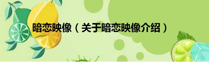 大家好,小钱来为大家解答以上的问题。暗恋映像,关于暗恋映像介绍这个很多人还不知道,现在让我们一起来看看吧!