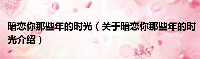 关于暗恋你那些年的时光到此分享完毕,希望能帮助到您。
