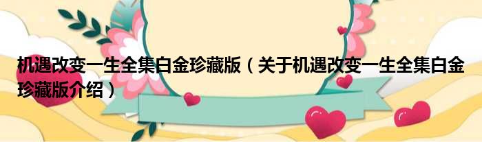 关于机遇改变一生全集白金珍藏版到此分享完毕,希望能帮助到您。