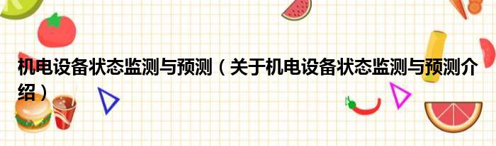 免责声明:本文由用户上传,如有侵权请联系删除!大家好,小钱来为大家解答以上的问题。机电设备状态监测与预测,关于机电设备状态监测与预测介绍这个很多人还不知道,现在让我们一起来看看吧!
