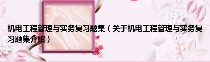 免责声明:本文由用户上传,如有侵权请联系删除!大家好,小钱来为大家解答以上的问题。机电工程管理与实务复习题集,关于机电工程管理与实务复习题集介绍这个很多人还不知道,现在让我们一起来看看吧!