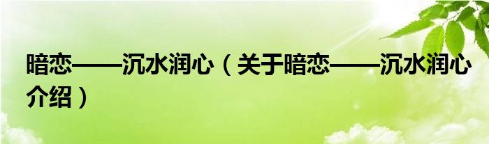 关于暗恋——沉水润心到此分享完毕,希望能帮助到您。