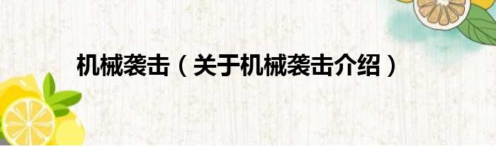 大家好,小钱来为大家解答以上的问题。机械袭击,关于机械袭击介绍这个很多人还不知道,现在让我们一起来看看吧!