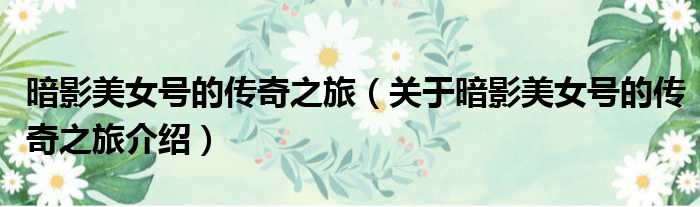 关于暗影美女号的传奇之旅到此分享完毕,希望能帮助到您。