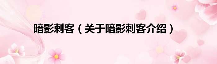 免责声明:本文由用户上传,如有侵权请联系删除!大家好,小钱来为大家解答以上的问题。暗影刺客,关于暗影刺客介绍这个很多人还不知道,现在让我们一起来看看吧!
