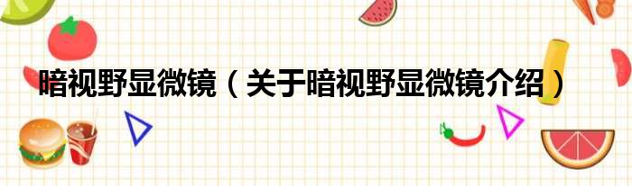 1、 暗视野显微镜(dark field microscope)是光学显微镜的一种,也叫超显微镜(ultramicroscope )。