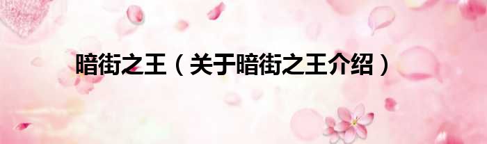 免责声明:本文由用户上传,如有侵权请联系删除!大家好,小钱来为大家解答以上的问题。暗街之王,关于暗街之王介绍这个很多人还不知道,现在让我们一起来看看吧!