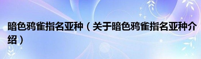1、 暗色鸦雀指名亚种(学名:Paradoxornis zappeyi zappeyi),是中国的特有物种。