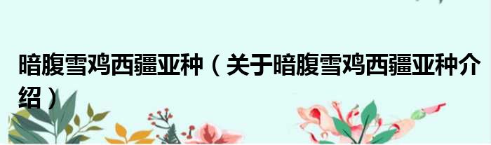 关于暗腹雪鸡西疆亚种到此分享完毕,希望能帮助到您。