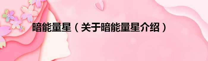 免责声明:本文由用户上传,如有侵权请联系删除!大家好,小钱来为大家解答以上的问题。暗能量星,关于暗能量星介绍这个很多人还不知道,现在让我们一起来看看吧!