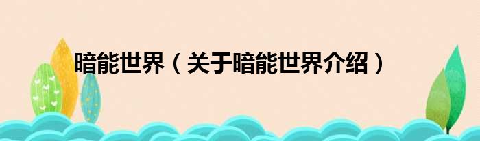 大家好,小钱来为大家解答以上的问题。暗能世界,关于暗能世界介绍这个很多人还不知道,现在让我们一起来看看吧!