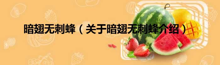 关于暗翅无刺蜂到此分享完毕,希望能帮助到您。