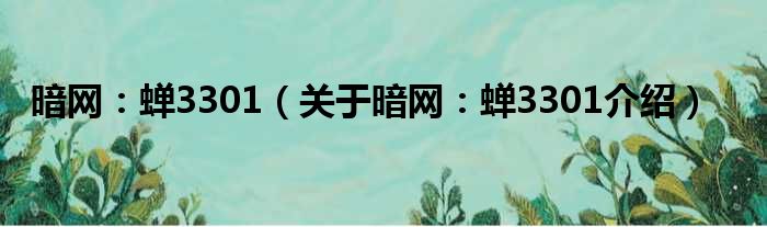 大家好,小钱来为大家解答以上的问题。暗网:蝉3301,关于暗网:蝉3301介绍这个很多人还不知道,现在让我们一起来看看吧!
