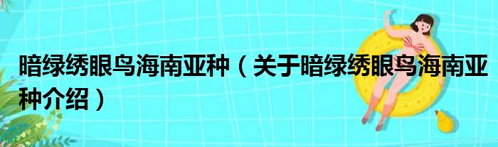 免责声明:本文由用户上传,如有侵权请联系删除!大家好,小钱来为大家解答以上的问题。暗绿绣眼鸟海南亚种,关于暗绿绣眼鸟海南亚种介绍这个很多人还不知道,现在让我们一起来看看吧!