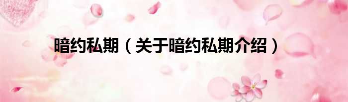 大家好,小钱来为大家解答以上的问题。暗约私期,关于暗约私期介绍这个很多人还不知道,现在让我们一起来看看吧!