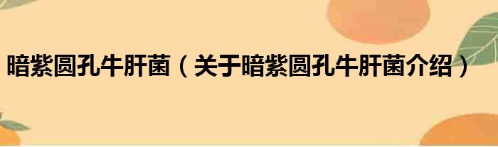 1、 暗紫圆孔牛肝菌是担子菌纲、伞菌目、牛肝菌科下的一种真菌类生物。
