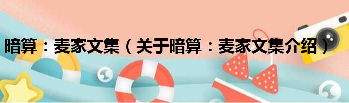 免责声明:本文由用户上传,如有侵权请联系删除!大家好,小钱来为大家解答以上的问题。暗算:麦家文集,关于暗算:麦家文集介绍这个很多人还不知道,现在让我们一起来看看吧!