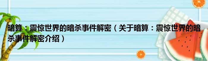 大家好,小钱来为大家解答以上的问题。暗算:震惊世界的暗杀事件解密,关于暗算:震惊世界的暗杀事件解密介绍这个很多人还不知道,现在让我们一起来看看吧!