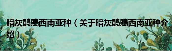 关于暗灰鹃鵙西南亚种到此分享完毕,希望能帮助到您。