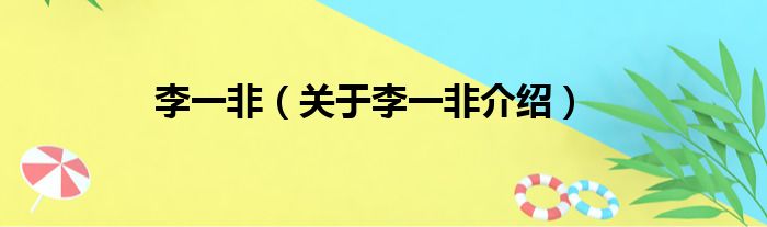 免责声明:本文由用户上传,如有侵权请联系删除!大家好,小钱来为大家解答以上的问题。李一非,关于李一非介绍这个很多人还不知道,现在让我们一起来看看吧!