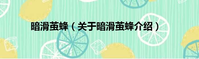 关于暗滑茧蜂到此分享完毕,希望能帮助到您。