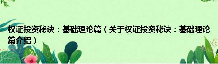 免责声明:本文由用户上传,如有侵权请联系删除!大家好,小钱来为大家解答以上的问题。权证投资秘诀:基础理论篇,关于权证投资秘诀:基础理论篇介绍这个很多人还不知道,现在让我们一起来看看吧!