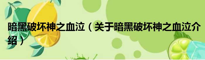 大家好,小钱来为大家解答以上的问题。暗黑破坏神之血泣,关于暗黑破坏神之血泣介绍这个很多人还不知道,现在让我们一起来看看吧!