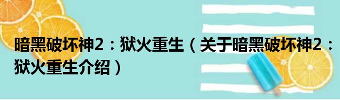 大家好,小钱来为大家解答以上的问题。暗黑破坏神2:狱火重生,关于暗黑破坏神2:狱火重生介绍这个很多人还不知道,现在让我们一起来看看吧!