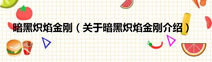 免责声明:本文由用户上传,如有侵权请联系删除!大家好,小钱来为大家解答以上的问题。暗黑炽焰金刚,关于暗黑炽焰金刚介绍这个很多人还不知道,现在让我们一起来看看吧!