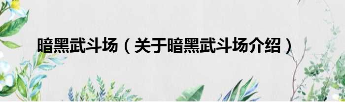 大家好,小钱来为大家解答以上的问题。暗黑武斗场,关于暗黑武斗场介绍这个很多人还不知道,现在让我们一起来看看吧!